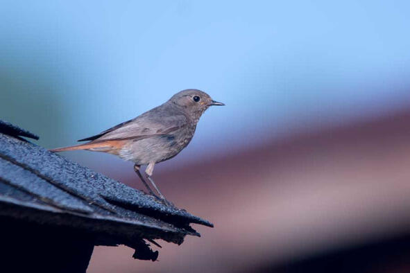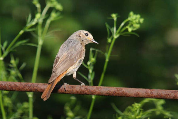 Возле дома можно встретить также горихвосток. Небольшие птички, чуть меньше воробья, относятся к семейству дроздовых. Помимо собственно дроздов к этому же семейству относятся соловьи, зарянки, варакушки, каменки, о которых речь пойдёт позже. Птиц этого семейства отличают большие выразительные глаза. Горихвостки охотно селятся в парках и зонах малоэтажной застройки, где есть деревья. Самец обыкновеннойгорихвостки(Phoenicurus phoenicurus), называемой также горихвосткой-лысушкой или садовой горихвосткой, отличается яркой, заметной окраской оперения (рис. 38). Самочка (рис. 39) скромнее, без яркого красного цвета на груди, однако рыжий хвост всё же «горит». Этих птиц много в горной части Крыма, там их даже называют лесными воробьями, однако же эти снимки сделаны в селе, на участке, где эта парочка и гнездилась.
