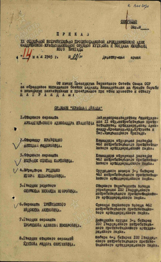 ЦАМО ф. 80-ГВОРР, оп. 2, д. 1494. Секретно.