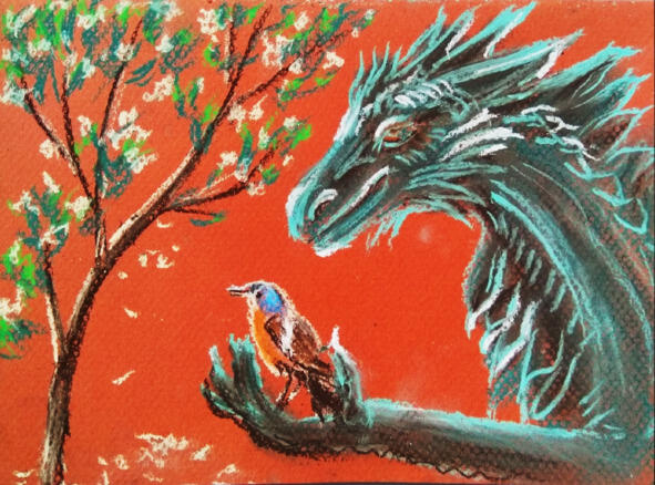 В маленьком доме у самой реки жила Драконесса. Была она не самой злой и не самой страшной из всех существующих на свете Драконов, и даже не самой большой, но тем не менее весьма огнедышащей. Драконесса любила уединённую жизнь, вела потихоньку своё нехитрое хозяйство, читала книги, писала печальные стихи и ходила гулять на речку или в ближайший лес.