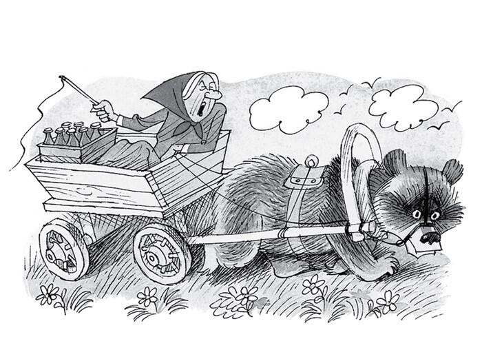 У моей бабушки в деревне ручной медведь живёт. Она его в телегу запрягает. Он её возит. И квас в сельпо доставляет. А сейчас зима. Он под бабушкиной кроватью спит. Весной его разбудят. Со всего района будильники соберут. Поедете к нам в деревню, сами увидите.