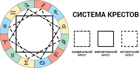 Всего крестов 3. Каждый крест объединяет все четыре стихии. Если стихия определяет качества, темперамент человека, то крест это поведение, заложенное изначально природой.