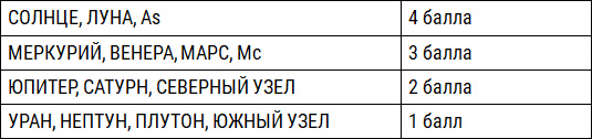 Пример рабочего гороскопа.Для расчета синтетического знака учитываем стихию и крест. Синтетический знак рабочего гороскопа человека: при учете 10 значений преобладает стихия Земля и фиксированный крест. Подставляя значения (См. рис. 4.3), получили синтетический знак Телец.
