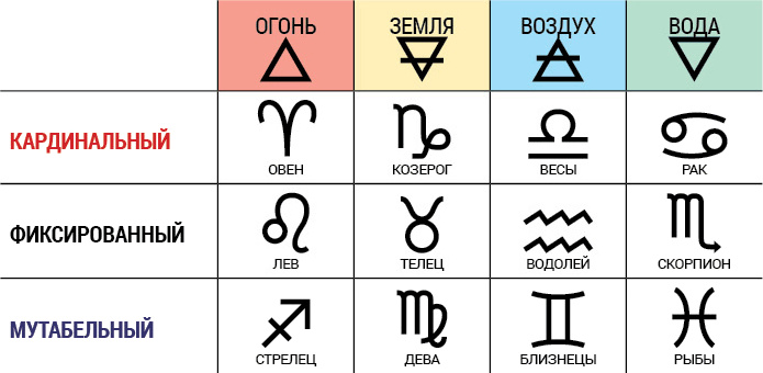 Синтетический знак дополняет все остальные показатели гороскопа и открывает новые возможности и грани личности. Как правило, он может в самом гороскопе быть не выделен, его очень легко вычислить, и он поможет при первичном анализе личности. Зная свою стихию и крест, которые доминируют в натальной карте, можно вычислить свой синтетический знак. (См. рис. 4.3)