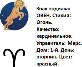 Овен является одним из самых активных знаков зодиака, с максимально проявленной энергией. Знак Овен, находится Дома, в обители планеты Марс. Человек имеет большой потенциал энергии, физической силы, лидерских качеств, мужественности и индивидуальности. В напряженности он агрессивен, конфликтен, переменчив. По жизни такой человек лидер, там, где он находится, там активность, скорость, способность полностью отдаваться делу, преодолевать препятствия, конкурентная борьба. Присутствие его, как первого знака зодиака, характеризует его как первого, того, кто начинает активно, и энергичного. Он может проявить себя как хороший «стартапер». Человек мужественный и отважный, любит спорт, предпочтение отдает индивидуальным видам. Там, где он, там всегда конкуренция, так как он стремится стать первым, на что указывает Солнце в экзальтации и имеет все шансы, так как наделен организаторскими способностями, работоспособностью, быстро выполняет поставленные задачи. Знак Овен первый пробуждает природу. Если посмотреть на начало весны, то Овен символизирует первый, самый мощный импульс, с помощью которого пробуждается природа. Человек не терпит вторых ролей, установленных кем-то законов. У него только первая главная роль, где бы он ни находился: в семье, бизнесе, политике, спорте. Человеку под этим знаком свойственно порой сначала действовать, а потом думать. Он не может сидеть на месте, неусидчив.