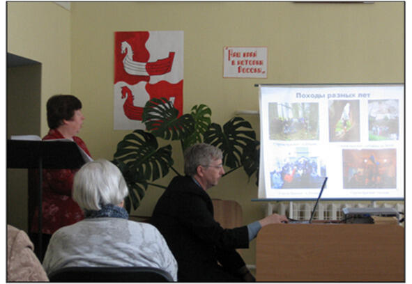 С первым докладом выступила Валентина Викторовна Муштукова, которая представила отчёт о деятельности ассоциации «Экотур», действующей на территории Струго-Красненского района. Отчёт сопровождался показом многочисленных фотографий.