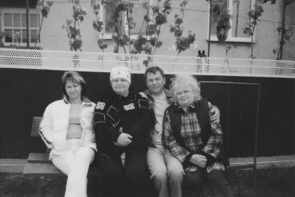 Валя, я, Дед Данил со своей второй женой, Таисией Николаевной, на руках у неё маленький Серёжа.