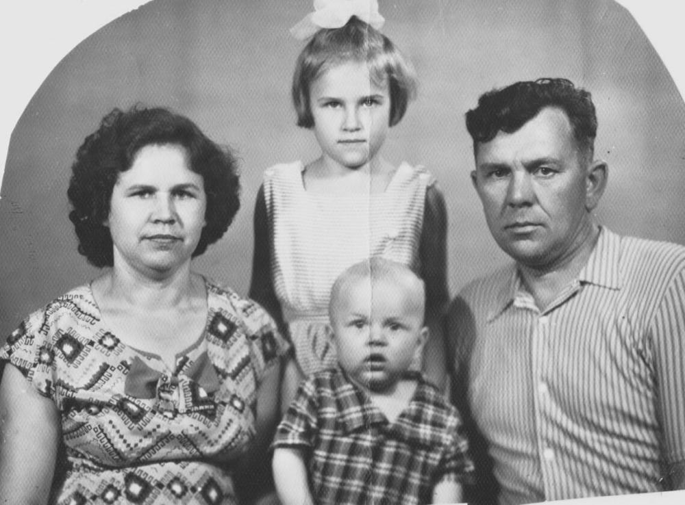 Катя, Коля, их дети Женя и Андрей Саваторовы.