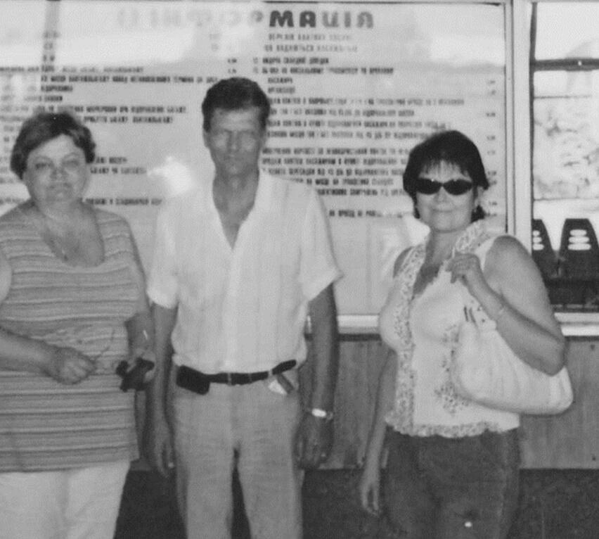 Тетя Катя и в среднем возрасте болела, в пожилом случился инсульт. Ухаживали за ней дети и муж Коля. У дяди Коли была мечта завести личный автомобиль. Он работал на городском автобусе водителем. Водитель Николай от бога. Когда они с тётей Катей в пожилом возрасте болели, я и Галя их навестили. Как семья нас встречала! Сестра Женя наварила холодца, как говорят, на Маланьину свадьбу. Дядя Коля водил меня по небольшому огороду и показывал, где закопал бутылки с самогоном. Иногда путался, представляю, сколько их там. Потом завёл меня в гараж детище жизни со словами: «Возьми что-нибудь на память», а у самого на глазах слёзы. Я выбрала маленький ручной работы гвоздодёр. Он и сейчас у меня, хотя украинские пограничники пытались забрать его, выдавая за холодное оружие. Картина в поезде, как в песне Тимура Шаова «Транзитный поезд через Украину»: