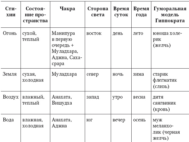 Умножим триаду Гегеля на космогонию Сократа, описанную Платоном в диалоге «О государстве», где в центре мироздания горит огонь, над которым распласталась твердь земли, окруженная подушкой воздуха, разделяющей мир земной со стихией воды «божественными небесами», добавим немного Гиппократа с его четырьмя жидкостями и получим еще набор интересных свойств стихий, которые пригодятся нам в дальнейших разборах.
