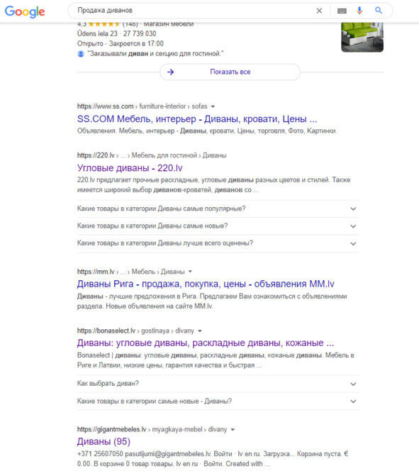 Если производитель диванов желает продавать свою продукцию напрямую, используя поисковую систему, то ему нужно первоначально задуматься о том на какие вопросы пользователей на своём сайте он будет отвечать, чтобы оказаться на вершине поиска, предварительно оценив конкурентов.