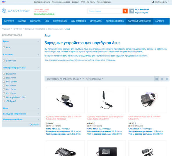 Страница интернет-магазина.