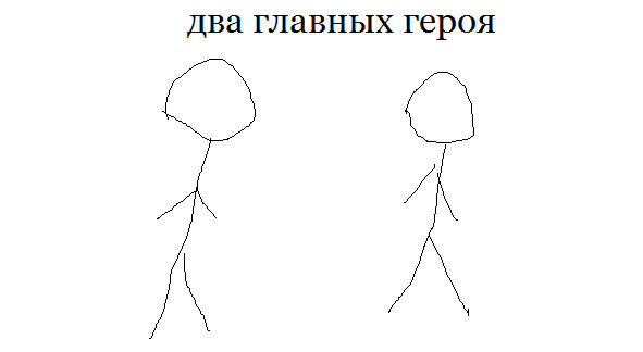 Тут будет два главных героя. Две перпендикулярные сюжетные линии. Надеюсь, вы знаете главное свойство перпендикулярных сюжетных линий. Одна линия будет почти пьесой, вторая почти повестью. Вместе они будут давать пьесовесть, видимо. Кстати, интернет вообще не знает такого слова, поэтому запатентую на всякий случай.