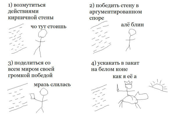 Все написанное ниже является точкой зрения героев. Вы можете с ними не соглашаться, но спорить бесполезно. Хотя вы и с кирпичной стеной сможете поспорить я в вас не сомневаюсь.