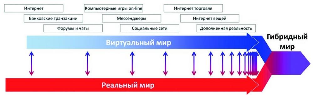 Рисунок 1 Слияние виртуального и реального миров с образованием гибридного мира[29]