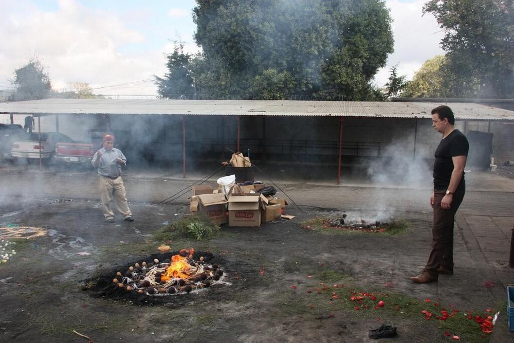 Колдун нарисовал мелом круг для костра, разделил его на 4 части, обложил его свечками и горючими шарами. Меня пригласил встать там, где мне будет удобно, поджег костер и начал ритуал.