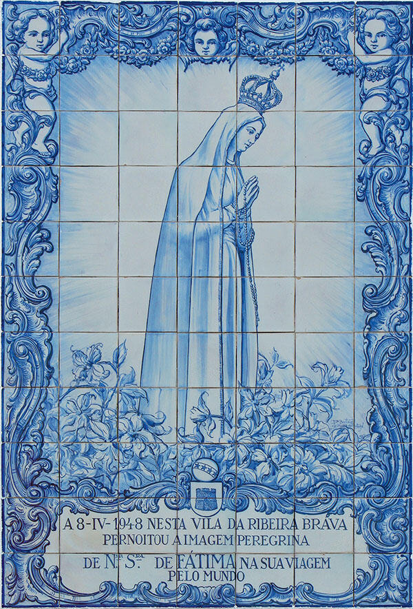 Богоматерь Фатима. Керамическая плитка (Azulejo) на стене Igreja de São Bento, Рибейра-Брава, Мадейра, Португалия