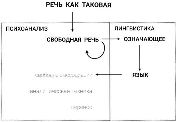 Означающее в качестве базового и специфичного элемента свободной речи в рамках кабинетной аналитической ситуации перемещается в область обыденного языка, и, получив в стенах лингвистического цеха недостающий крутящий теоретический момент, а также заимствовав там новые теоретические средства и инструменты, должно принести их обратно в качестве гуманитарной помощи на аналитическую почву. Иными словами, данная модель предполагает, что, скажем так, аналитическое означающее, которое было концептуализировано и получило свой смысл исходя исключительно из специфики искусственной и закрытой внутрианалитической ситуации, основанной на особом сеттинге и свободных ассоциациях, теперь могло покидать стены клиники, чтобы, выйдя в свет, обогащать общеязыковую науку. Далее следовал обмен опытом и взаимовливания: означающее прияащалось от науки новым знанием, и, вооружившись ее новыми достижениями (обретенными на почве самого означающего в его аналитическом измерении), должно было принести их обратно в клинику, которой собственных теоретических средств мыслить означающее, возможно, не достает. Парадокс данного расположения означающего заключается в том, что, будучи, не имея ни смысла, ни цели, ни средств за пределами психоанализа, означающее подобно разбойнику должно было, не бог весть за счет чего, совершая несанкционированные его внутренней логикой вылазки на чуждую ему территорию, обретать там себя в новом, ином, совершенно непонятном и невообразимом качестве и возвращаться с награбленными сокровищами назад, в свое аналитическое укрытие.