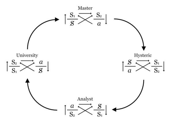 Представить себе минимальный ассортимент означающих, можно обратившись к теории выдающегося этнолога и философа Клода Леви-Стросса, который заметил, что для существования элементарной структуры родства минимально необходимы четыре элемента. Именно четверка была наиболее важным для Лакана числом, которое легло в основу его самых прорывных концептуализаций. Например, четвертичная структура Эдипа, или комплекса кастрации, где к традиционной троичной конструкции (ребенок мать фаллос) Лакан добавил четвертый элемент отцовскую символическую инстанцию (Имена-Отца).