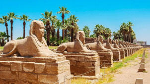 В Новом царстве появятся сфинксы с головами сокола, или крокодила, или змеи, или шакала, позднее с человеческими или бараньими[15]. За сфинксами на аллее сфинксов могли находиться деревья. Аллея подводила к входу в храм.