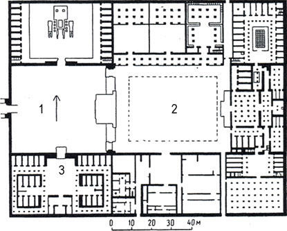 В устройстве дворцов бывали и свои особенности. Например, «изюминкой» наиболее хорошо сохранившегося Северного дворца (ил. 38) стал занимавший почти все пространство второго двора открытый прямоугольный пруд (2) глубиной 4,5 м.
