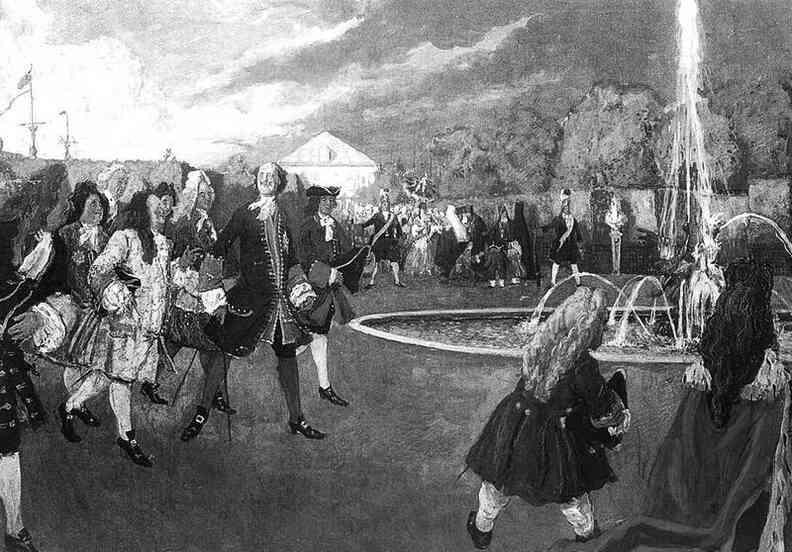 Петр I в Летнем саду. Гуашь А. Бенуа. 1910 г.