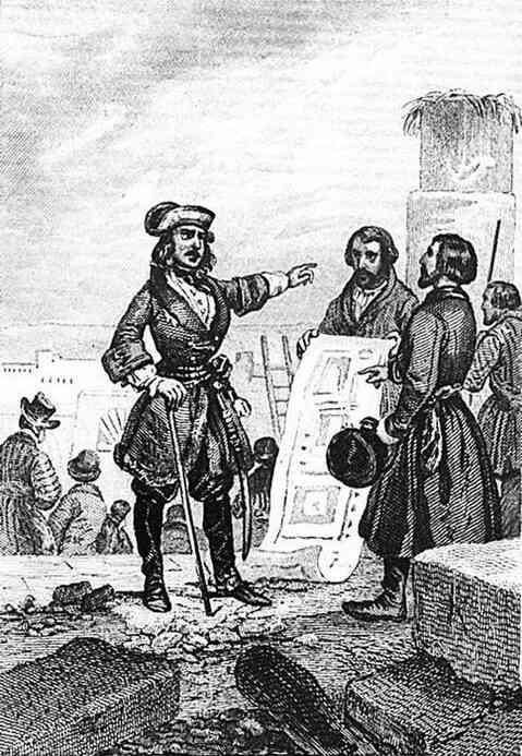 Кстати, план Петербурга оставался строжайшей государственной тайной даже спустя пятнадцать лет после основания столицы. Например, уже упомянутый де Лави писал в своих депешах 1717 года, что он терпеливо «ухаживает» за Трезини и Леблоном, чтобы раздобыть план Санкт-Петербурга Поэтому вряд ли Петр I мог так свободно обсуждать план своего «парадиза», как это представлено на гравюре.
