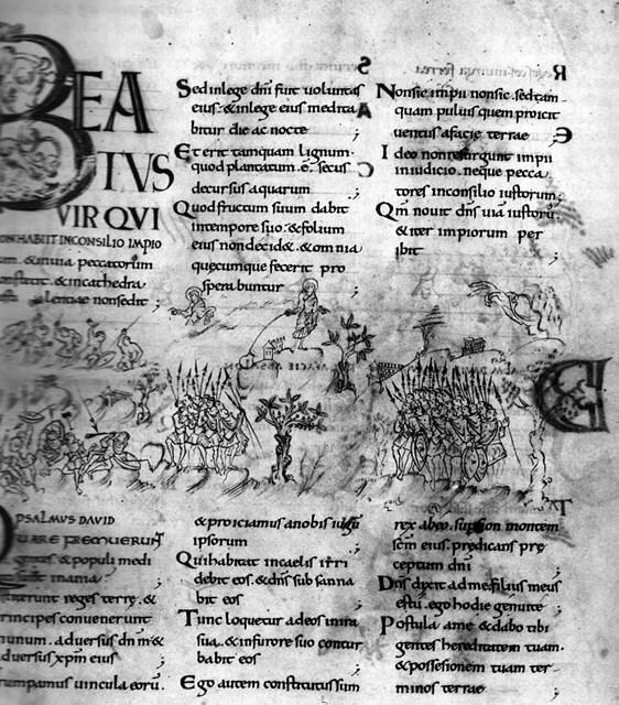 2б. 1й псалом. Первая копия Утрехтской Псалтири. Харлейская Псалтирь. (Лондон, British Library, Harley 603, f. 2), 1-я четв. XI в.