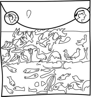 38б. Сотворение птиц и рыб. Смирнский Октатевх (сгорел в 1922) (Смирна, Евангелическая школа, Cod. A 1, f. 6v). (Рис. А. А. Тэвдой-Бурмули)