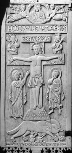 54. Распятие с Солнцем и Луной (деталь). Рамбонский диптих (Ватиканские музеи, 62442, IX Х вв.)