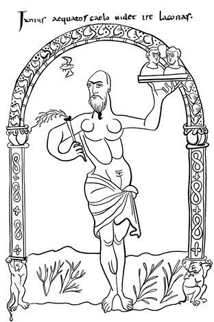 Мы намерены начать наше исследование с момента, на котором остановилась А. Хейманн, с поиска и возможности идентификации тех «промежуточных этапов», которые предшествовали сложению комплексной композиции фронтисписа и появлению среди персонификаций-месяцев инородного персонажа. Наша задача не столько еще раз показать, каким образом календарные мотивы могли стать одним из вариантов изображения Дней Творения, сколько попытаться объяснить очевидное отличие одного из них, типа персонификации Третьего дня (назовем этот тип «персонаж в пейзаже»), от остальных (тип «персонаж с атрибутом»).