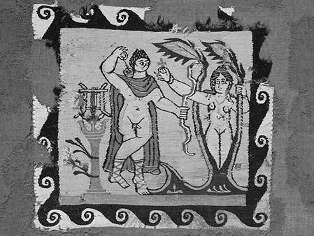 59. 1. Третий день Творения. Верденский гомилиарий (Верден, Городская библиотека, Ms 1, f. Jr, фрагмент), 11101114 гг. или 2-я четв. XII в. (Bibliothèque du Grand Verdun, tous droits réservés); 2. Третий день Творения. «Иудейские древности» Иосифа Флавия (Париж, Национальная библиотека, MS. Lat. 5047, f. 2r, фрагмент), 11691180 гг.; 3. Июнь. Мартиролог Адальберта Прюмского (Vat. Reg. Lat. 438, f. 13r), 813850 гг. (Рис. А. А. Тэвдой-Бурмули); 4. Аполлон и Дафна. (Шаль Сабины, IVV вв., Louvres, Fouilles A. Gayet, E 29302)