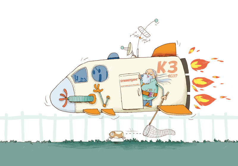 Бежим! Я потянула Юлиуса за собой. Мы перелезли через изгородь в сад к Лаутербахам. Космический корабль завис между кольцами и трапецией. Верёвки качелей крепко обмотались вокруг корпуса.