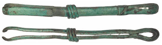 Во многих книгах упоминаются маленькие пинцеты из медного сплава или серебра в составе наборов туалетных принадлежностей средневековой женщины. Археологические находки это подтверждают, однако мы не знаем точно, для вырывания чего предназначались такие инструменты. В трактате XI века De Ornatu Mulierum («О женской косметике») нашей старой знакомой Тротулы де Руджеро женщинам рекомендуется такой метод эпиляции: