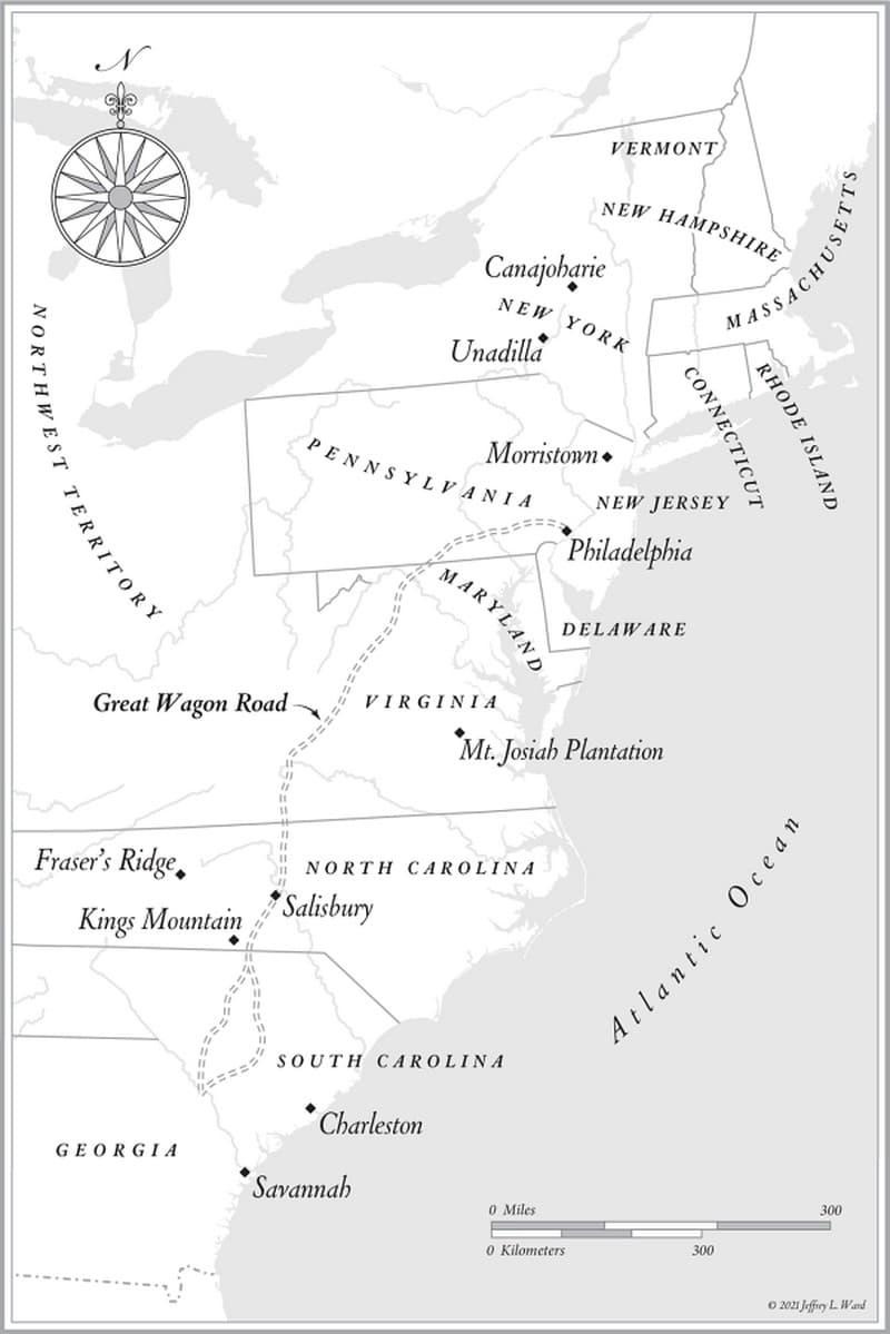 Frasers Ridge, Colony of North CarolinaJune 17, 1779THERE WAS A STONE under my right buttock, but I didnt want to move. The tiny heartbeat under my fingers was soft and stubborn, the fleeting jolts life. The space between them was infinity, my connection to the dark sky and the rising flame.