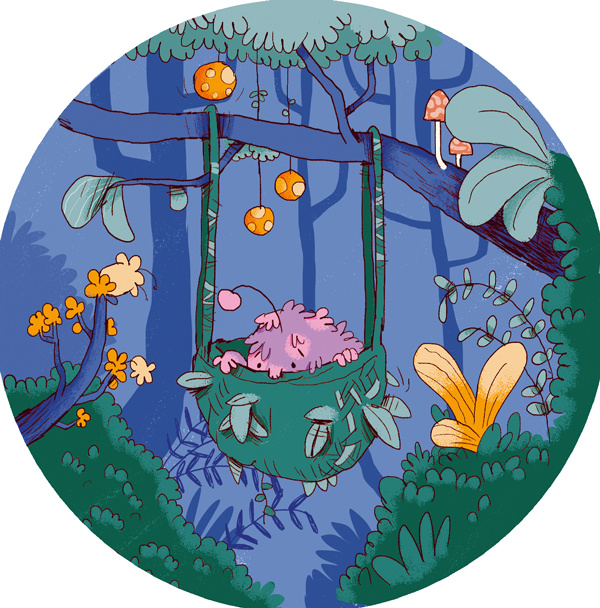 Мы вскочили на стулья и приникли к подзорным трубам. Сначала я не разглядела ничего, кроме разноцветных листьев. Казалось, они так близко, что я удивилась, почему не щекочут мне нос. Я разглядывала ствол и странно сплетённые ветки, и вдруг поняла, что передо мной нечто среднее между гамаком и птичьим гнездом!