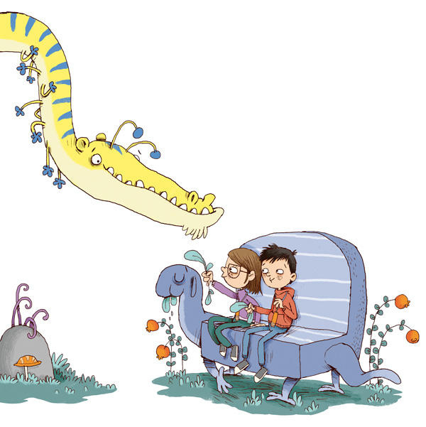 Сначала мы поскакали через зелёный цветущий луг, где обычно паслись дебры. Издалека казалось, словно кто-то расставил на лугу пёстрые диваны, чтобы устроить пикник. Сейчас лошадок на лугу, понятное дело, не было. В небе парил яркий надувной матрас. (Поправка: вообще-то это был вовсе не надувной матрас, а так называемая «платформа для посетителей». Изнутри её заполнили специальным газом гораздо лучше того, которым наполняют у нас на Земле воздушные шарики, и посетители могли парить над зоопарком и рассматривать всё, что находилось внизу.)