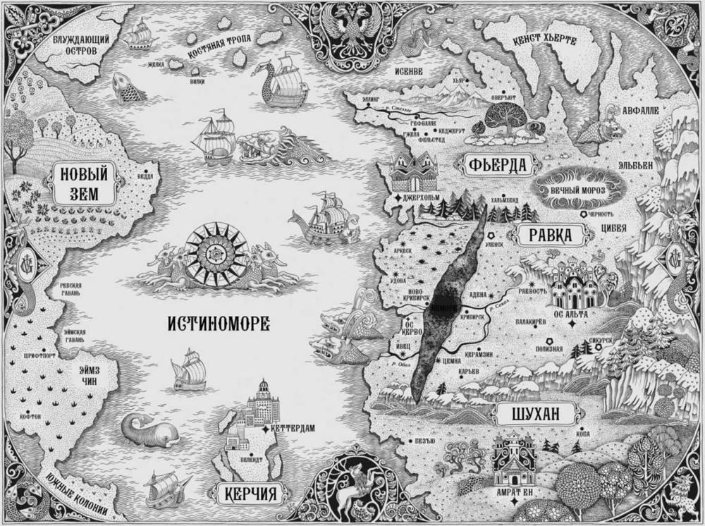 Исследуя утесы на побережье близ Ос Керво, можно наткнуться на пещеру, которая, как поговаривают, когда-то была лежбищем дракона. И пусть существование дракона было фактом весьма спорным, сырость в пещере царила неоспоримая. Так вот, если вы посмеете украсть или исказить текст этой книги, то будете обречены провести вечность невероятно сырую вечность в этой пещере, дрожа от холода, давясь поганками и мечтая о драконьем пламени, способном согреть вас.