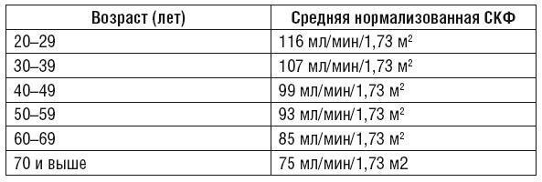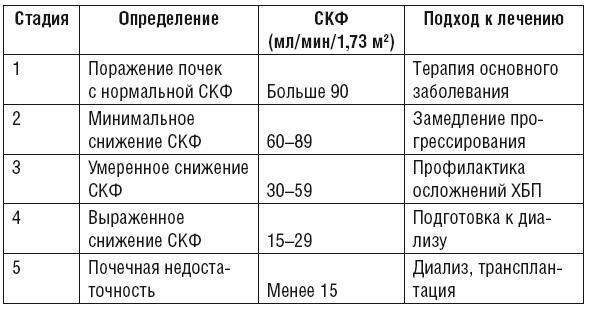 Приведем таблицу цифр СКФ при хронической болезни почек ХБП сокращенно (табл. 3).
