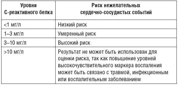 Было также доказано, что С-реактивный белок даже при росте в рамках общемедицинской нормы до 5 мг/л показывает увеличение риска внезапной смерти от ССЗ. То есть маркер еще «в норме», а риск уже растет.