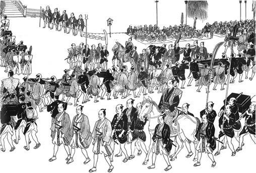 Редакция Букэ сёхатто 1635 года систематизировала и ужесточила отношения между бакуфу и удельными князьями. На протяжении следующих двух столетий эти отношения определяли важнейшие стороны жизни не только воинского сословия, но и всего японского общества. Провинциальные даймё проводили год дома, в своих владениях, и год в Эдо, на службе у сёгуна. Их жёны и дети постоянно жили в Эдо фактически на положении заложников, поскольку не могли покинуть город без специального разрешения. Охрана и содержание городских усадеб даймё, равно как и их ежегодные переезды со свитой, требовали немалых расходов, иногда доходивших до половины годового дохода. Вассалы удельных князей круглый год несли службу в городе, охраняя и обслуживая их усадьбы; из-за этого Эдо стал самым «воинским» и самым «мужским» городом в стране.