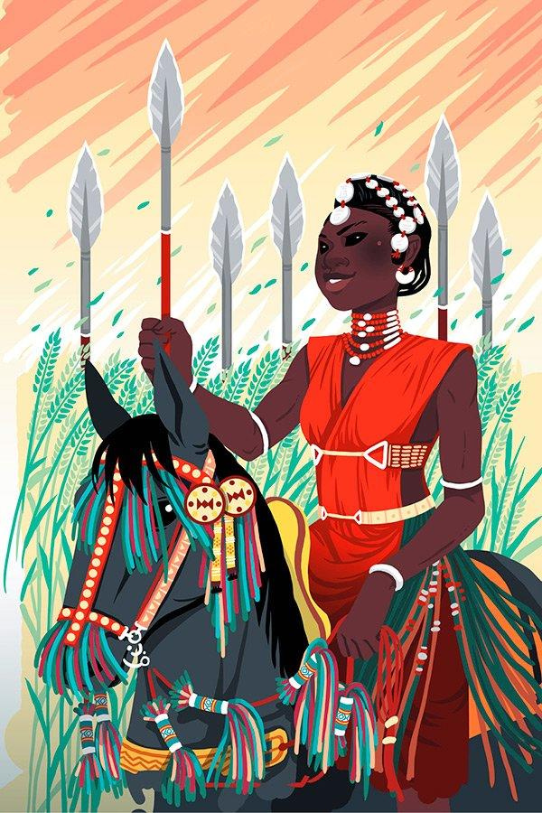 Жила-была сильная и прекрасная царевна по имени Йенненга. Отцом ее был Недега, царь дагомбы. Йенненга не знала равных в ратном деле. Она прекрасно владела копьем и луком, великолепно держалась в седле, твердой рукой метала дротики. Царская дочь управляла собственным войском, в четырнадцать лет она разгромила в бою силы соседей, мандинка. Народ почитал Йенненгу, а отец не желал с нею расставаться. Когда настала пора подыскать дочери жениха, царь решил не отпускать ее из дому, хоть она и желала выйти замуж.
