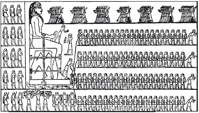 Насколько известно из раскопок, надписей на памятниках и документах на папирусе, в этот период почти не было значительных прорывов в области инженерных техник. Египтяне третьего тысячелетия использовали строительные методы, обусловленные окружающей средой. Они продолжали использовать те же методы тридцатью или больше веками позже, когда их страна перестала существовать как отдельная империя. Три фактора определили характер египетской инженерии. Первые неограниченные людские ресурсы. Все операции основывались на неограниченном использовании времени и сил рабов (рис. 2.7), захваченных во время войн или набегов на соседей. Тягловый скот играл небольшую роль в египетском строительстве. Лошадь почитаемое животное на Востоке никогда не использовалась для работы. Да ее и не знали в Египте до 1700 года до н. э.