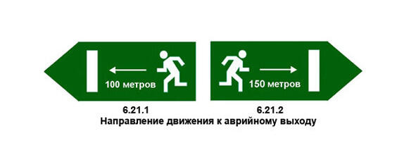 Знаки 6.21.1 и 6.21.2 перекочевали из офисов и торговых центров на дорогу, а в частности в тоннели и информируют об аварийных выходах и расстояниях до них.