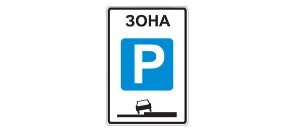 5.29 «Зона регулируемой стоянки». Место, с которого начинается территория (участок дороги), где стоянка разрешена и регулируется не с помощью табличек, а изображена прямо на знаке, причем стоянка с заездом на тротуар разрешена на обоих сторонах дороги.