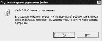 Рис. 1.3. Предупреждение при попытке удаления системного файла.
