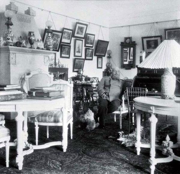 Дом Олсуфьевых на Фонтанке, Петербург. В центре отец Ю. А. Олсуфьева Александр Васильевич Олсуфьев. Фото конца XIX века. Частное собрание, Москва