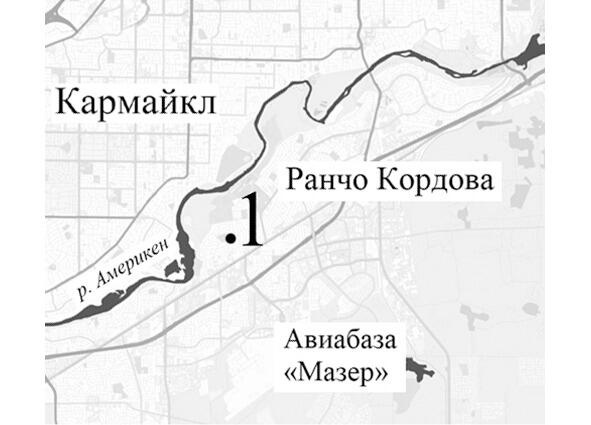 Эта карта позволяет получить представление о месторасположении дома, в котором Кэри Франк подверглась нападению насильника. Расстояние до авиабазы «Мазер», где служил отец потерпевшей, составляло около 2 км., в нескольких сотнях метрах от дома располагалась зелёная зона в пойме реки Америкен, место уединенное и безопасное для преступника. Следователи предположили, что именно туда последний и убежал.