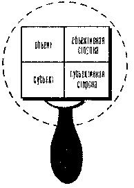 Основой квалификации преступлений является состав. Знание законодательных требований, особенностей структуры УК предопределяет успешность и безошибочность квалификации посягательств. Графически, для наглядности, квалификацию можно изобразить путем наложения модели на собранные фактические данные (см. рисунок), где круг с разорванными краями символизирует неполную информацию о содеянном, а сборный видоискатель из 4 линз состав преступления.