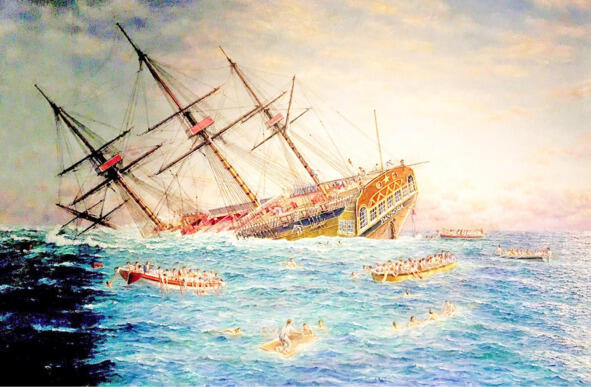 Крушениие «Пандоры». С рисунка Питера Хейвуда.