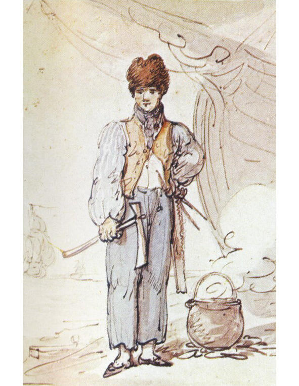 Судовой плотник. Рисунок XVIII века.